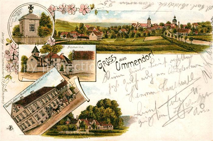 33549181 alte Postkarte Ummendorf Biberach Ansicht mit Kirche Kriegerdenkmal Domaine Gasthof Muehle Litho postalisch gelaufen Erhaltung siehe scans [FriedD77] KatCode: 11110008426120