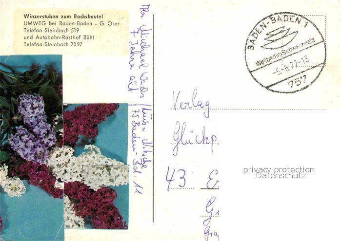 72729038 alte Postkarte Umweg Baden Winzerstuben zum Bocksbeutel postalisch gelaufen Erhaltung siehe scans [AndreD76] KatCode: 11110008211000