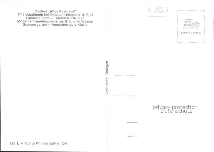 41811790 Unadingen Gasthof Altes Posthaus postalisch nicht gelaufen Erhaltung siehe scans KatCode: 11110008315070