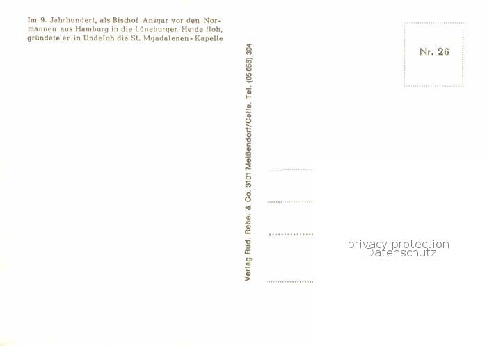 72662262 Undeloh DJH Jugendherberge Kapelle Naturschutzpark Lueneburger Heide postalisch nicht gelaufen Erhaltung siehe scans [FriedD77] KatCode: 11110003353036