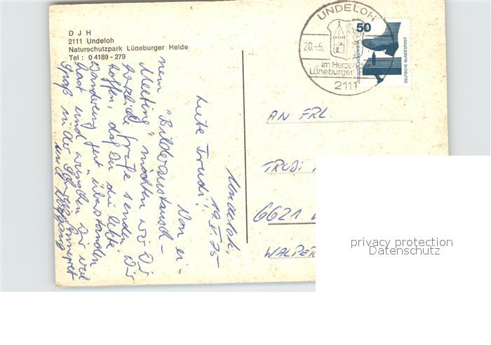72582527 alte Postkarte Undeloh DJH Jugendherberge Naturschutzpark Lueneburger Heide postalisch gelaufen Erhaltung siehe scans [FriedD77] KatCode: 11110003353036