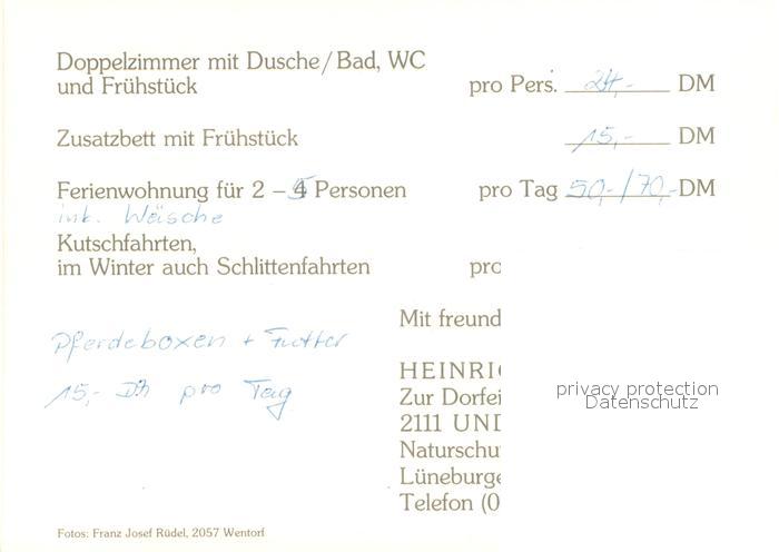 73740987 Undeloh Ferien auf dem Bauernhof Heinrich Heins Gaststube Pferdekutsche Gaestezimmer postalisch nicht gelaufen Erhaltung siehe scans [WerneD78] KatCode: 11110003353036
