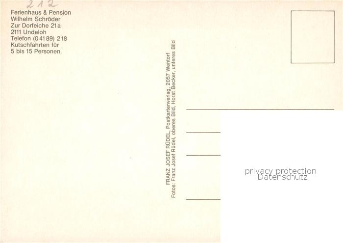 73649799 Undeloh Ferienhaus Pension Schroeder Kutschfahrten postalisch nicht gelaufen Erhaltung siehe scans [FriedD77] KatCode: 11110003353036