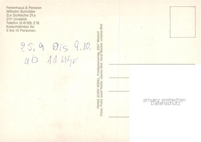 73725946 Undeloh Ferienhaus Pension Schroeder Kutschfahrten postalisch nicht gelaufen Erhaltung siehe scans [FriedD77] KatCode: 11110003353036