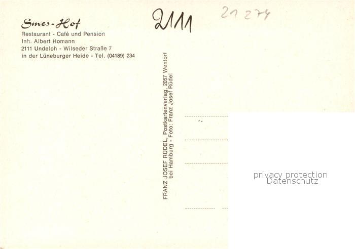 73569262 Undeloh Gasthof Smes-Hof postalisch nicht gelaufen Erhaltung siehe scans [PaolaD17] KatCode: 11110003353036