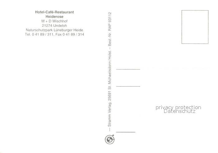 73085759 Undeloh Hotel Cafe Restaurant Heiderose postalisch nicht gelaufen Erhaltung siehe scans [FriedD77] KatCode: 11110003353036