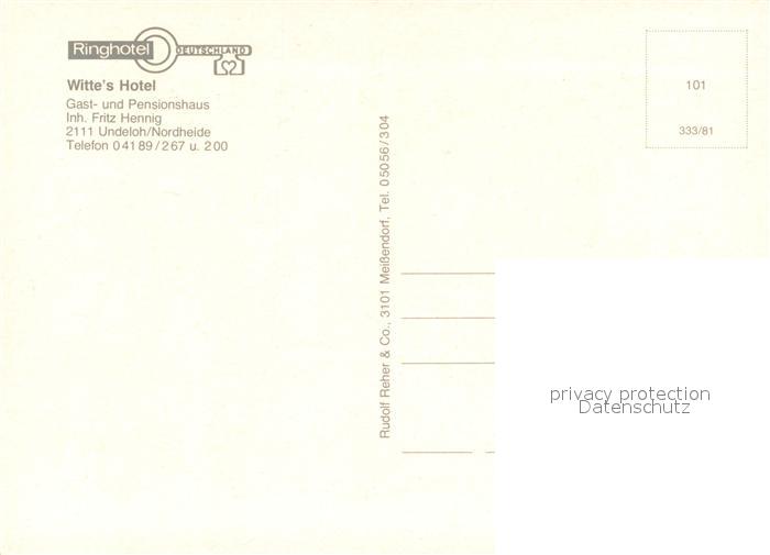 73651144 Undeloh Ringhotel Witte’s Hotel Restaurant im Naturpark Lueneburger Heide postalisch nicht gelaufen Erhaltung siehe scans [FriedD77] KatCode: 11110003353036