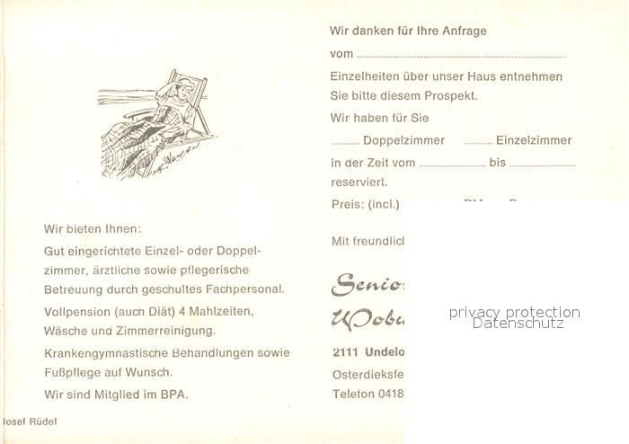 73309944 Undeloh Senioren-Pension Wobusa postalisch nicht gelaufen Keine Postkarte (siehe scan) Erhaltung siehe scans [NatalD47] KatCode: 11110003353036