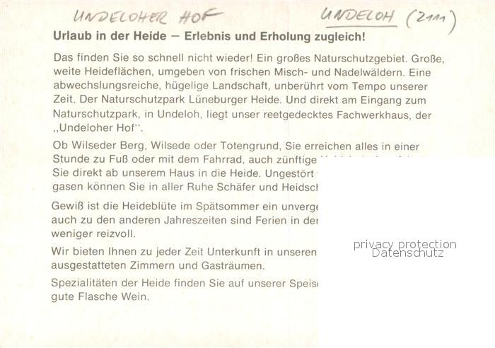 73725952 Undeloh Undeloher Hof Hotel Restaurant Urlaub in der Heide postalisch nicht gelaufen Werbekarte (keine Postkarte) Erhaltung siehe scans [FriedD77] KatCode: 11110003353036