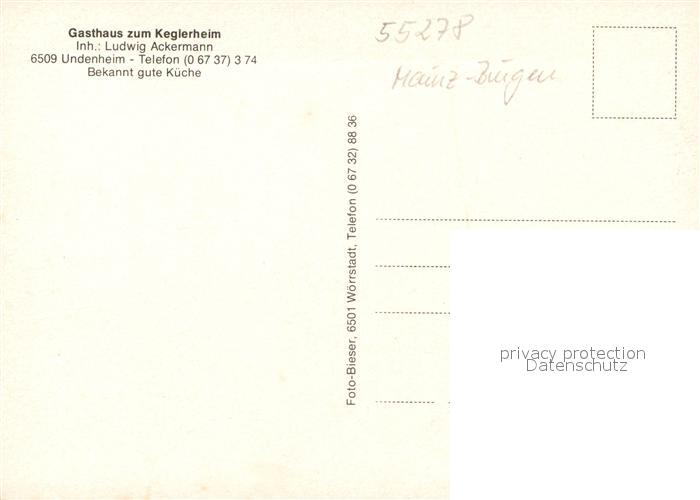 73332182 Undenheim Gasthaus zum Keglerheim postalisch nicht gelaufen Erhaltung siehe scans [LiesaD40] KatCode: 11110007339060