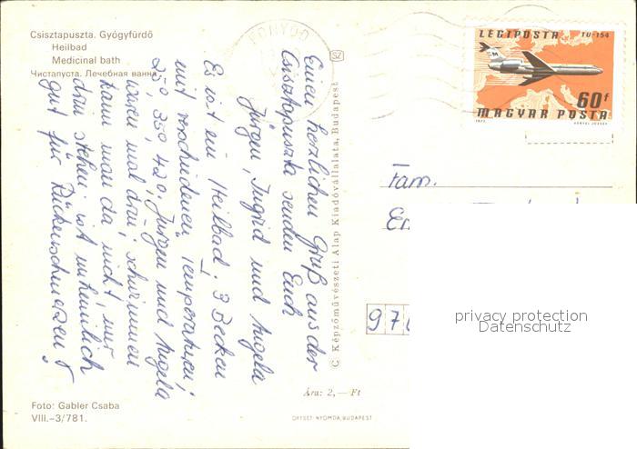 old postcard Ungarn Csisztapuszta Thermalbad postalisch gelaufen Erhaltung siehe scans [LiesaD40]
