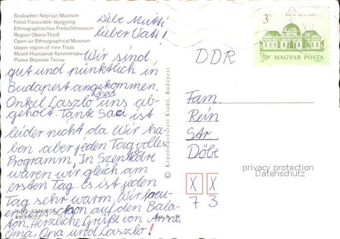 old postcard Ungarn Felsoe Tiszavideki tajegyseg Ethnographisches Freilichtmuseum postalisch gelaufen Erhaltung siehe scans