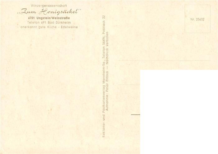 73886957 Ungstein Winzergenossenschaft Zum Honigsaeckel postalisch nicht gelaufen Erhaltung siehe scans [WerneD78] KatCode: 11110007332002