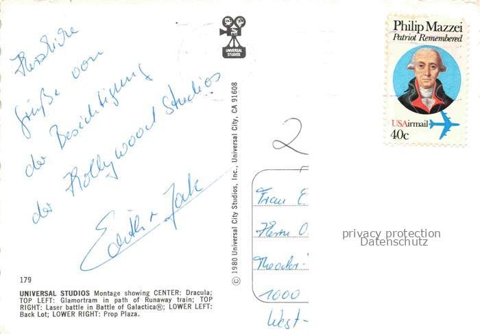 74095179 Universal Studios Universal City California USA Dracula Glamortram Laser battle of Galactica Prop Plaza postalisch nicht gelaufen Erhaltung siehe scans [WerneD78] KatCode: 14140050000000