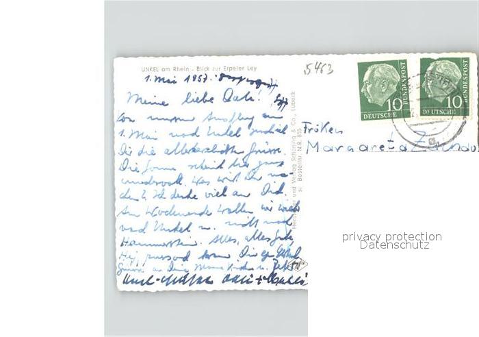 41619854 alte Postkarte Unkel Rhein Blick zur Erpeler Lex postalisch gelaufen Erhaltung siehe scans KatCode: 11110007138073