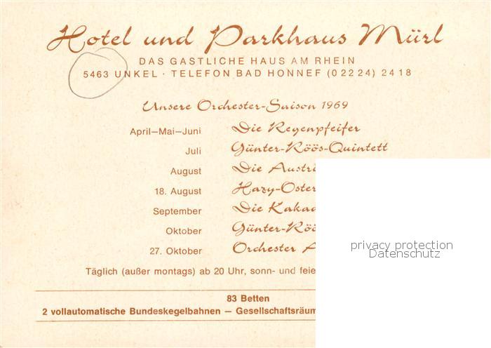 73829883 Unkel Rhein Hotel und Parkhaus Muerl Gastraum postalisch nicht gelaufen Erhaltung siehe scans [WerneD78] KatCode: 11110007138073