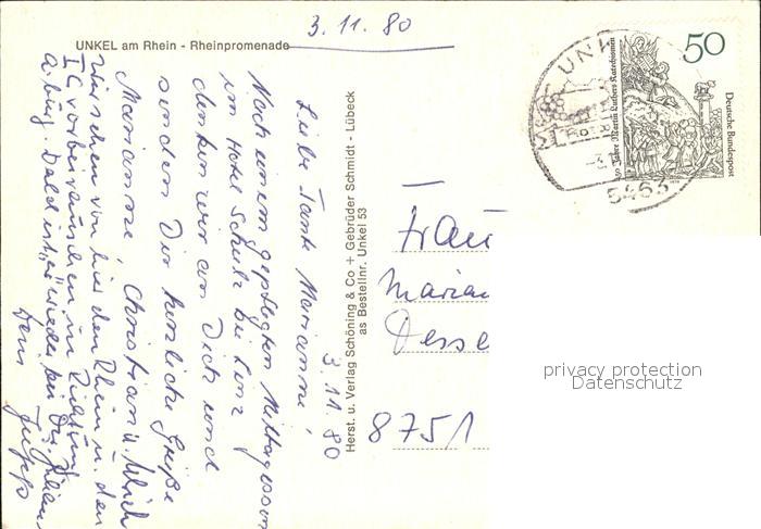 72496371 alte Postkarte Unkel Rhein Promenade Rheindampfer Hotel Schulz postalisch gelaufen Erhaltung siehe scans KatCode: 11110007138073