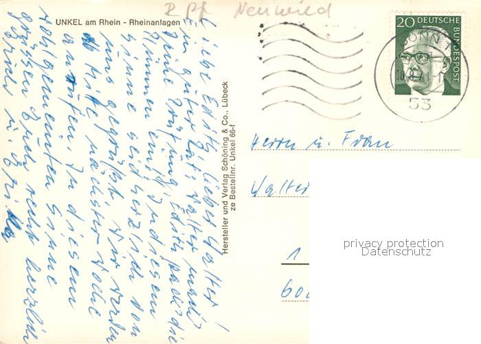 72930794 alte Postkarte Unkel Rhein Rheinanlagen postalisch gelaufen Erhaltung siehe scans [LiesaD40] KatCode: 11110007138073