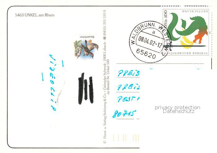 73209647 alte Postkarte Unkel Rhein Rheinpromenade Marienfiguren Strassenpartie postalisch gelaufen Erhaltung siehe scans [WerneD78] KatCode: 11110007138073