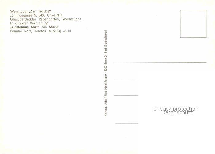 72709972 Unkel Rhein Weinhaus Zur Traube Rebengarten postalisch nicht gelaufen Erhaltung siehe scans [FriedD77] KatCode: 11110007138073