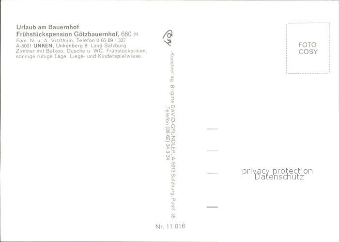 72377734 Unken Fruehstueckspension Goetzbauernhof postalisch nicht gelaufen Erhaltung siehe scans KatCode: 11390322050623