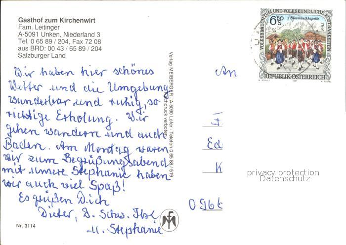 72011733 alte Postkarte Unken Gasthaus Zum Kirchenwirt postalisch gelaufen Erhaltung siehe scans KatCode: 11390322050623