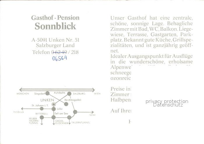 72080017 Unken Gasthof Sonnblick postalisch nicht gelaufen Werbekarte (keine Postkarte) Erhaltung siehe scans KatCode: 11390322050623
