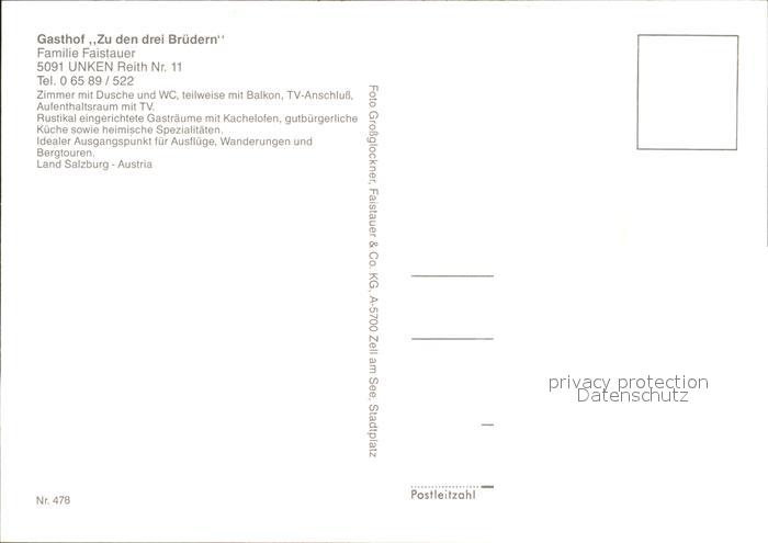 72320130 Unken Gasthof Zu den drei Bruedern postalisch nicht gelaufen Erhaltung siehe scans KatCode: 11390322050623