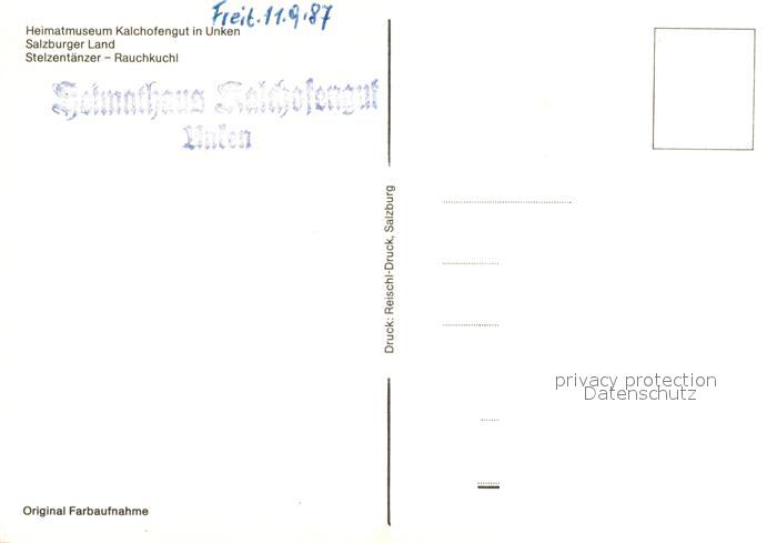 73174655 Unken Heimatmuseum Kalchofengut Stelzentaenzer Rauchkuchl postalisch nicht gelaufen Erhaltung siehe scans [PaolaD17] KatCode: 11390322050623