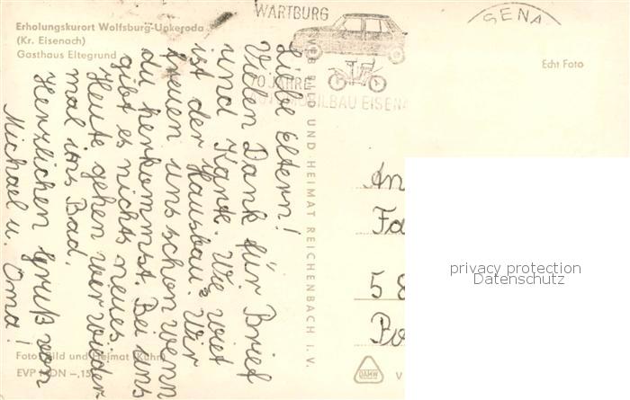 73755618 alte Postkarte Unkeroda Wolfsburg Thueringen Gasthaus Eltegrund postalisch gelaufen Erhaltung siehe scans [FriedD77] KatCode: 11110016056000