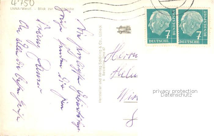 33703611 alte Postkarte Unna Blick zur Stadtkirche postalisch gelaufen Erhaltung siehe scans [WerneD78] KatCode: 11110005978036