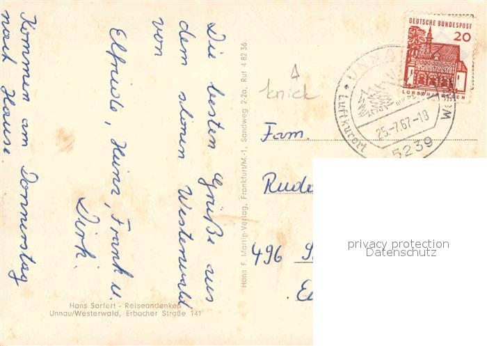 72830541 alte Postkarte Unnau Westerwald Erbacher Bruecke Erbacher Strasse Panorama postalisch gelaufen Erhaltung siehe scans [KathaD81] KatCode: 11110007143300