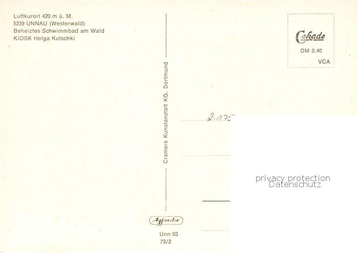 73833676 Unnau Westerwald Schwimmbad und Kiosk Kutschki postalisch nicht gelaufen Erhaltung siehe scans [WerneD78] KatCode: 11110007143300
