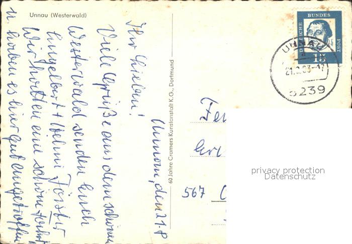 72191681 alte Postkarte Unnau Westerwald postalisch gelaufen Erhaltung siehe scans KatCode: 11110007143300