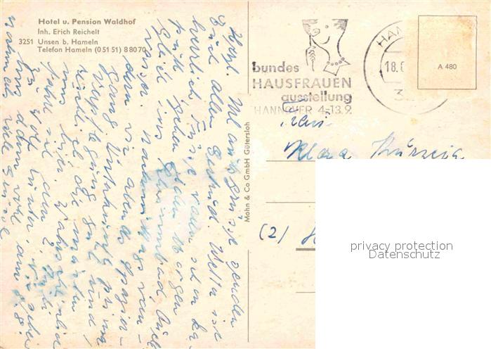72903463 alte Postkarte Unsen Hotel Pension Waldhof postalisch gelaufen Erhaltung siehe scans [FriedD77] KatCode: 11110003252006