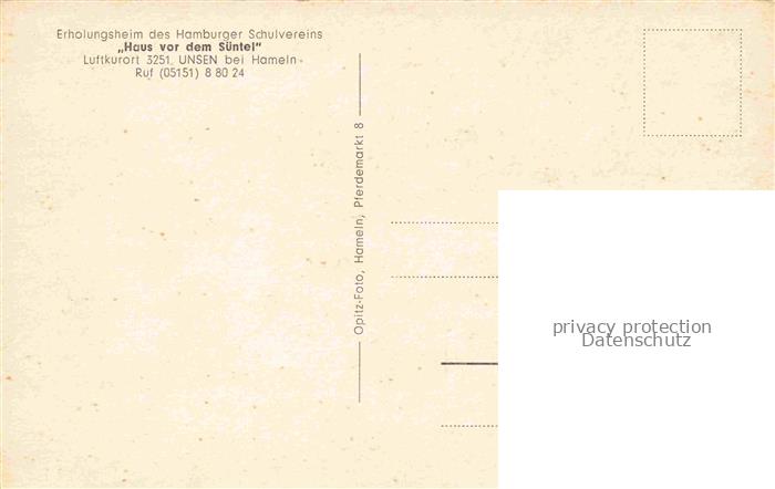 74150822 Unsen Suentel Hameln Niedersachsen Erholungsheim Gebaeude Garten Blumenanlage Baeume postalisch nicht gelaufen Erhaltung siehe scans [Karloger] KatCode: 11110003252006