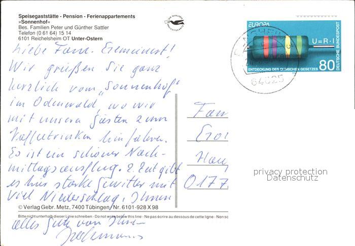 alte Postkarte Unter-Ostern Pension Gaststaette Sonnenhof postalisch gelaufen Erhaltung siehe scans