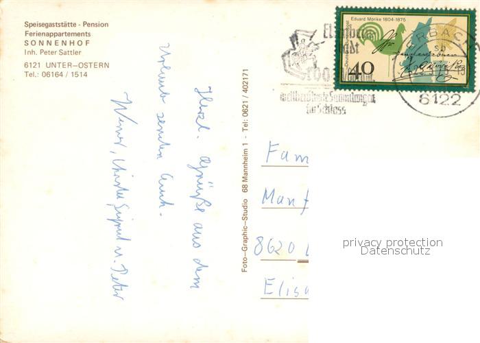 73720531 alte Postkarte Unter-Ostern Pension Sonnenhof Gaststaette Ponykutsche Reiten postalisch gelaufen Erhaltung siehe scans [FriedD77] KatCode: 11110006437013