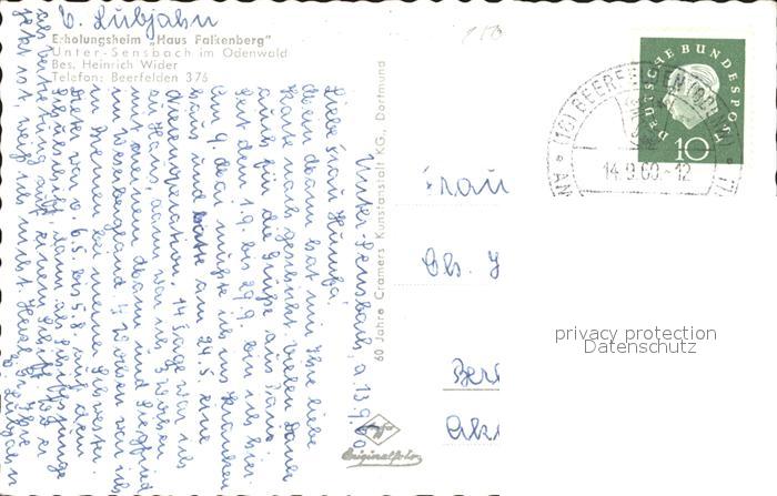 72187640 alte Postkarte Unter-Sensbach Erholungsheim Haus Falkenberg postalisch gelaufen Erhaltung siehe scans KatCode: 11110006437015