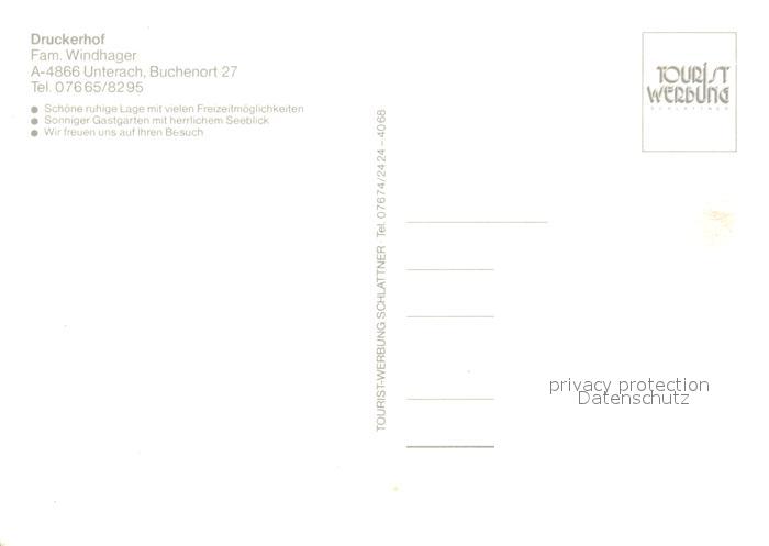 13188393 Unterach Attersee Druckerhof postalisch nicht gelaufen Erhaltung siehe scans [PaolaD17] KatCode: 11390315041745