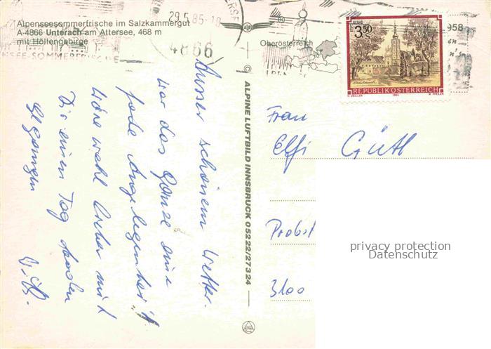 74155936 alte Postkarte Unterach Attersee Oberoesterreich AT Fliegeraufnahme mit Hoellengebirge postalisch gelaufen Erhaltung siehe scans [WerneD78] KatCode: 11390315041745