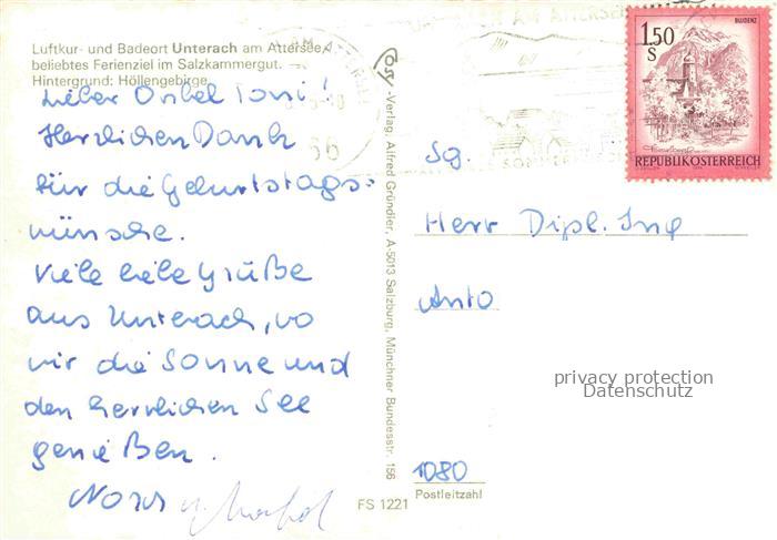 74155937 alte Postkarte Unterach Attersee Oberoesterreich AT Fliegeraufnahme mit Hoellengebirge postalisch gelaufen Erhaltung siehe scans [WerneD78] KatCode: 11390315041745