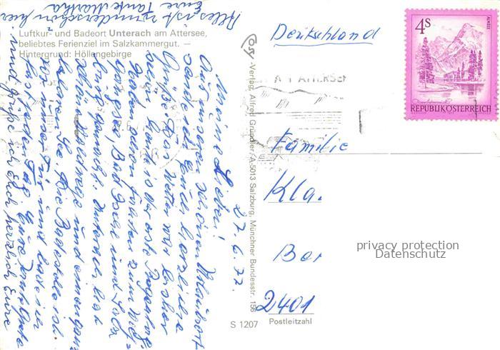 74152789 alte Postkarte Unterach Attersee Oberoesterreich AT Panorama mit Hoellengebirge postalisch gelaufen Erhaltung siehe scans [WerneD78] KatCode: 11390315041745