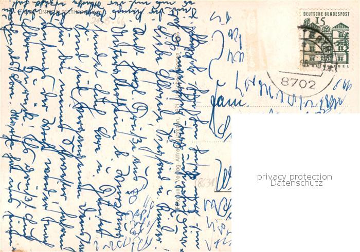 73854495 alte Postkarte Unteraltertheim Altertheim Rathaus Panorama Denkmal Kirche See an der Muehle Kindergarten postalisch gelaufen Erhaltung siehe scans [WerneD78] KatCode: 11110009679165