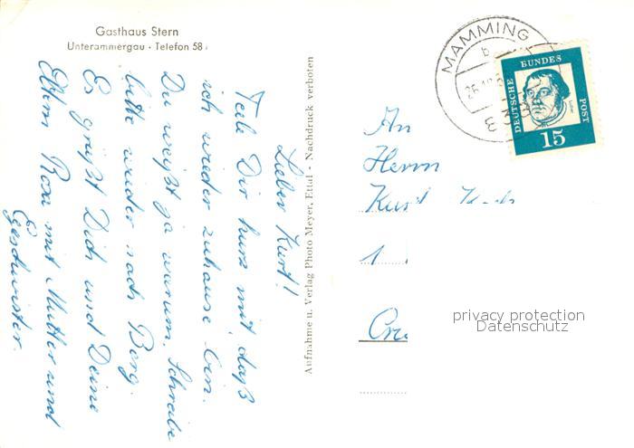 73646421 alte Postkarte Unterammergau Gasthof Stern Metzgerei postalisch gelaufen Erhaltung siehe scans [WerneD78] KatCode: 11110009180135