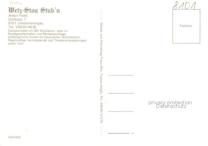 73868362 Unterammergau Metz Stoa Stubn Unterammergau Saalgaststaette postalisch nicht gelaufen Erhaltung siehe scans [WerneD78] KatCode: 11110009180135
