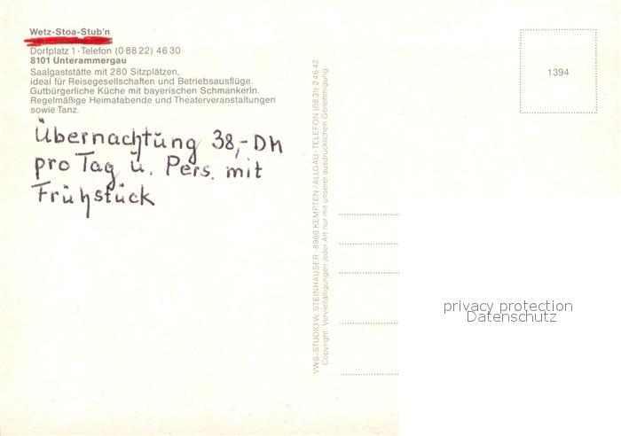 73641213 Unterammergau Wetz Stoa Stubn Gastraeume postalisch nicht gelaufen Erhaltung siehe scans [WerneD78] KatCode: 11110009180135