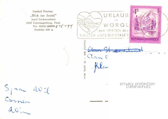 72847099 alte Postkarte Unterangerberg Gasthof Blick ins Inntal postalisch gelaufen Erhaltung siehe scans [NatalD47] KatCode: 11390335070528