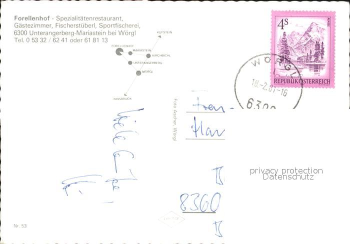 72591313 alte Postkarte Unterangerberg Spezialitaetenrestaurant Forellenhof postalisch gelaufen Erhaltung siehe scans [WerneD78] KatCode: 11390335070528