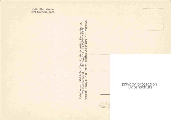 34142948 Unterbalbach Lauda-Koenigshofen BW Katholische Pfarrkirche postalisch nicht gelaufen Fliegeraufnahme Erhaltung siehe scans [FriedD77] KatCode: 11110008128139